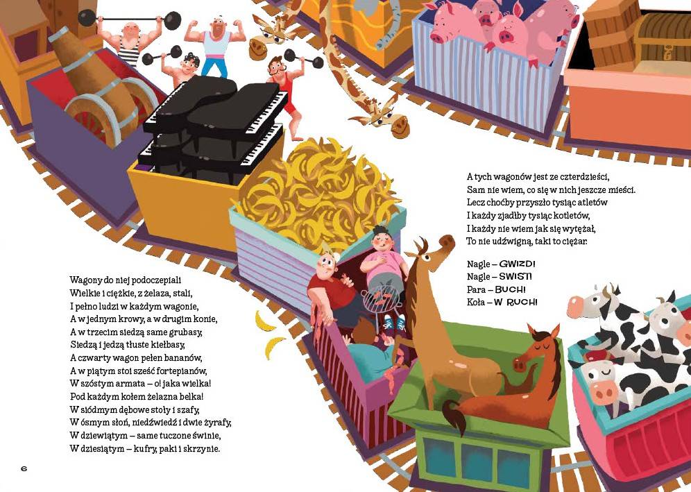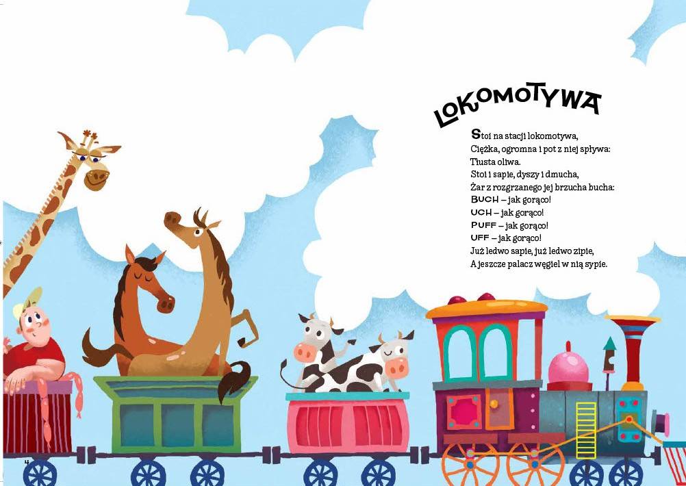 Kultowe wiersze mistrza Tuwima od pokoleń bawią dzieci i dorosłych. W tym zbiorze czekają na was niezwykłe przygody PANA MALUŚKIEWICZA, który w łupince orzecha przemierzył ocean, wiadomości z PTASIEGO RADIA oraz zabawne perypetie SŁONIA TRĄBALSKIEGO. W tej książce spotkacie ZOSIĘ SAMOSIĘ, DYZIA MARZYCIELA i rodzinę TRALALIŃSKICH, wyruszycie w podniebną podróż AEROPLANEM i poznacie mądrą historię o RYBAKU I ZŁOTEJ RYBCE. Wiersze Juliana Tuwima to pełne rytmu, humoru i fantazji teksty idealne do wspólnego czytania, recytowania i radosnej zabawy słowem.